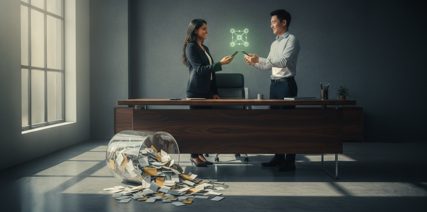 Replacing printed business cards is not solely a technology problem. Digital and NFC business card with analytics and tracking already exist and clearly outperform paper in speed, value, cost reduction, and sustainability. The real challenge is change management.