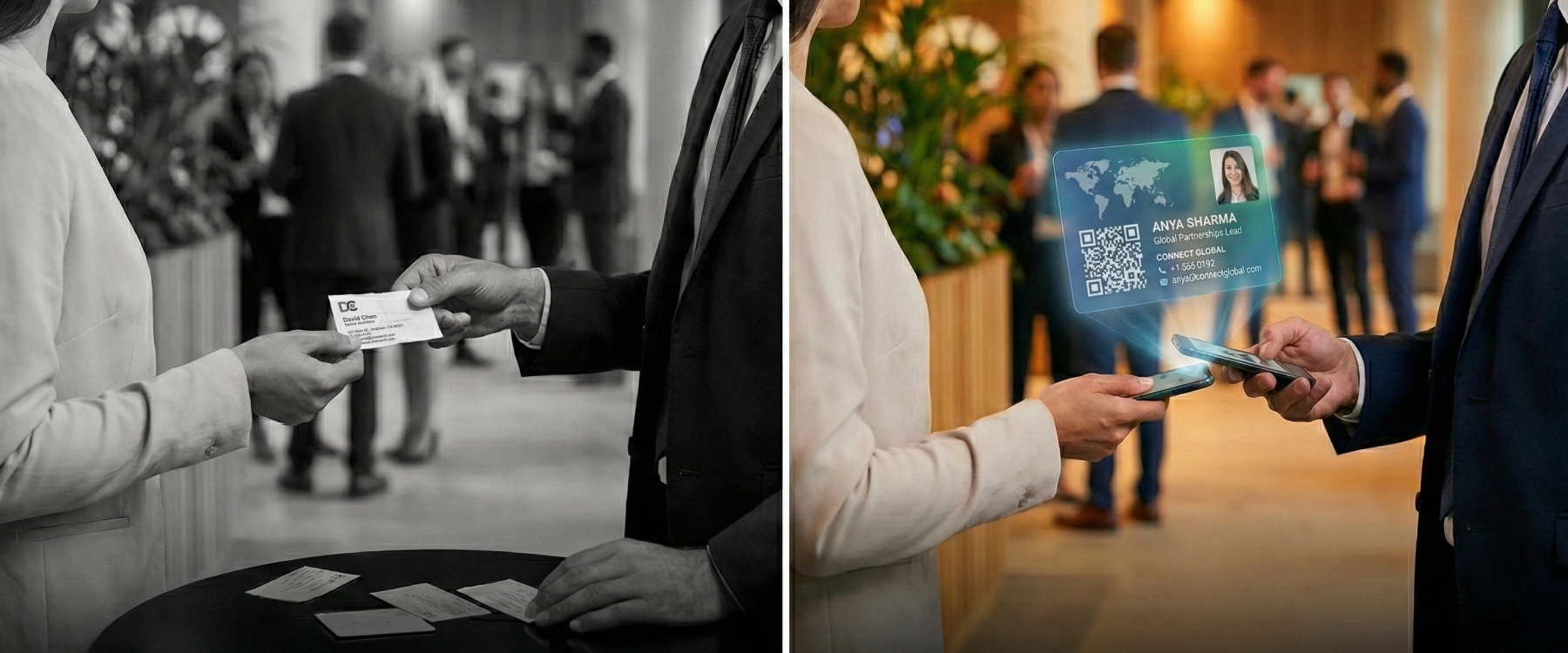 Digital business cards reduce social friction by simplifying one of the most uncomfortable moments in professional networking: the exchange of contact information.